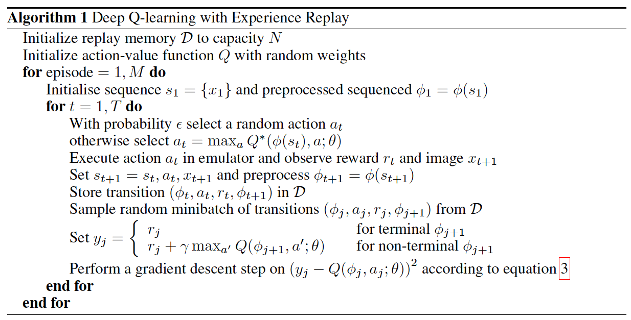 몰론, 위 알고리즘에서는 따로 target network에 대해 기술되어있지 않지만, TD target $y_j$를 계산할 때 target network를 사용한다. 또한, target network는 fixed interval로 Q-network의 parameter를 복사하여 업데이트한다.