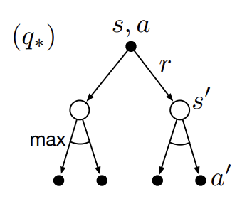 \[\begin{aligned} v_\ast(s) &= \max_{a \in \mathcal{A}(s)} q_{\pi_\ast}(s, a) \\ \end{aligned}\]아래는 optimal action-value function function $q_\ast$에 대한 backup diagram이다.