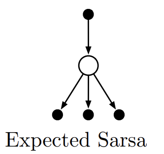 아래는 Expected Sarsa의 backup diagram이다. Sarsa와 비교했을 때 모든 action을 고려하고 있음을 확인할 수 있다.
